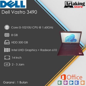 Processor Core i5 – 10210U ~1.60GHz Ram 8 GB VGA Intel UHD Graphics + Radeon 610 Layar 14 Inch HDD 500GB Wifi – Webcam – DVD RW Baterai 2 jam