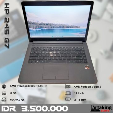 Spesifikasi: Processor AMD Ryzen 3 3300U -2.1GHz Ram 8 GB VGA AMD Radeon Vega 6 Graphics Layar 14 Inch SSD 256 GB Wifi – Webcam Baterai 2 jam Kondisi Bekas Normal Siap pakai Kelengkapan Unit, Charger