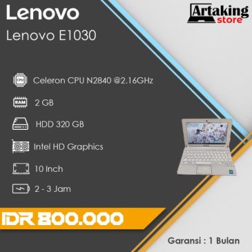 Proceccor Celeron N2840 CPU~ 2.16GHz RAM 2 GB HDD 320 GB Layar 10 inch VGA Intel HD Graphics Wifi – Webcam Baterai 2 jam
