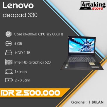 Proceccor Core i3 – 6006U CPU 2.00GHz RAM 4 GB HDD 1 TB Layar 14 inch VGA Intel HD Graphics 520 Wifi – Webcam Baterai 2 – 3 jam