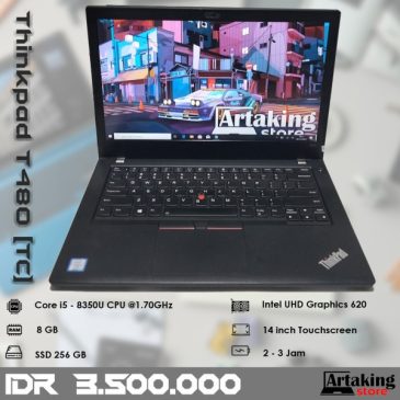 Proceccor Core i5 – 8350U CPU~1.70GHz RAM 8 GB SSD 256 GB VGA Intel UHD Graphics 620 Layar 14 inch Touchsreen Wifi – Webcam Baterai 2 -3 jam