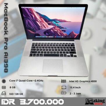 MacBook Pro A1398 (2013) Retina – Ram 8 GB – SSD 128 GBKategori: Laptop 3Jt an » MacBook Second | 730 Kali Dilihat